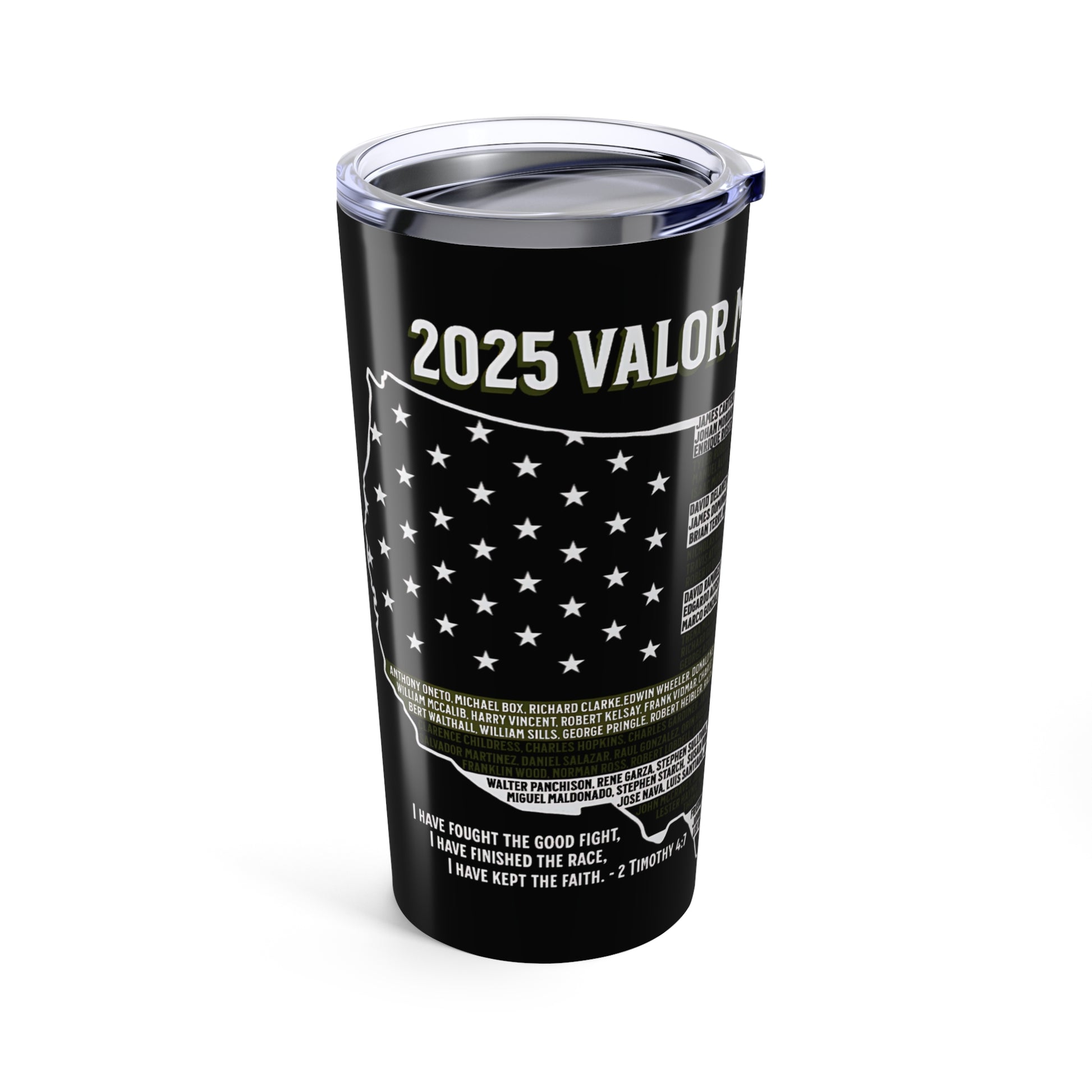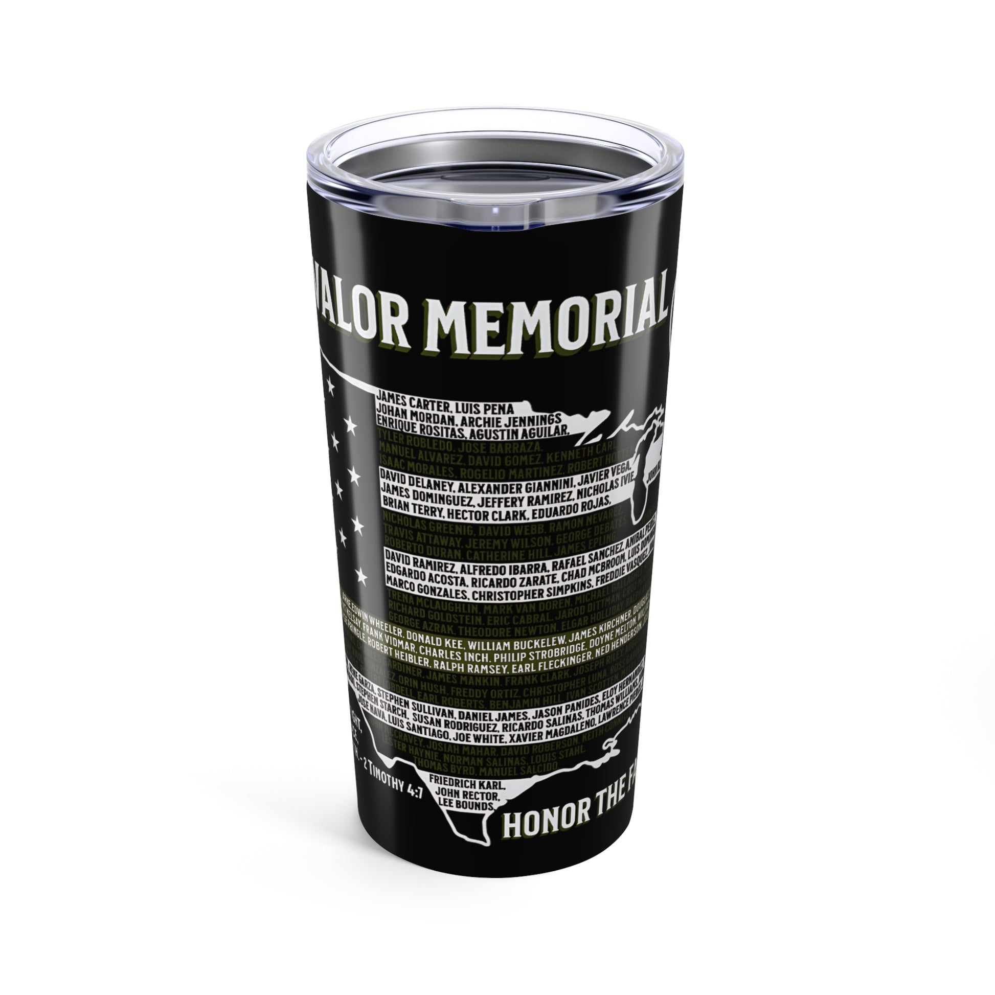 The 2025 Border Patrol Valor Memorial 20oz Tumbler by Vint Hill Designs is a tribute to the courage and sacrifice of fallen Border Patrol agents and K9s who gave their lives in the line of duty. This year, three new names join the Valor Memorial: