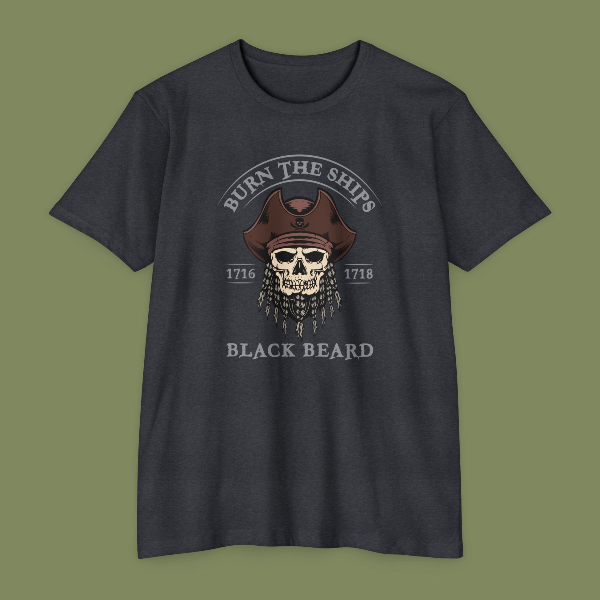 Embrace the daring spirit of Blackbeard and celebrate his legacy with the "Burn The Ships" T-Shirt. Whether you're a history enthusiast, a pirate aficionado, or simply seek unique fashion, this tee invites you to stand out from the crowd. Sail into uncharted waters with a piece of history that carries the thrill of adventure in every thread.