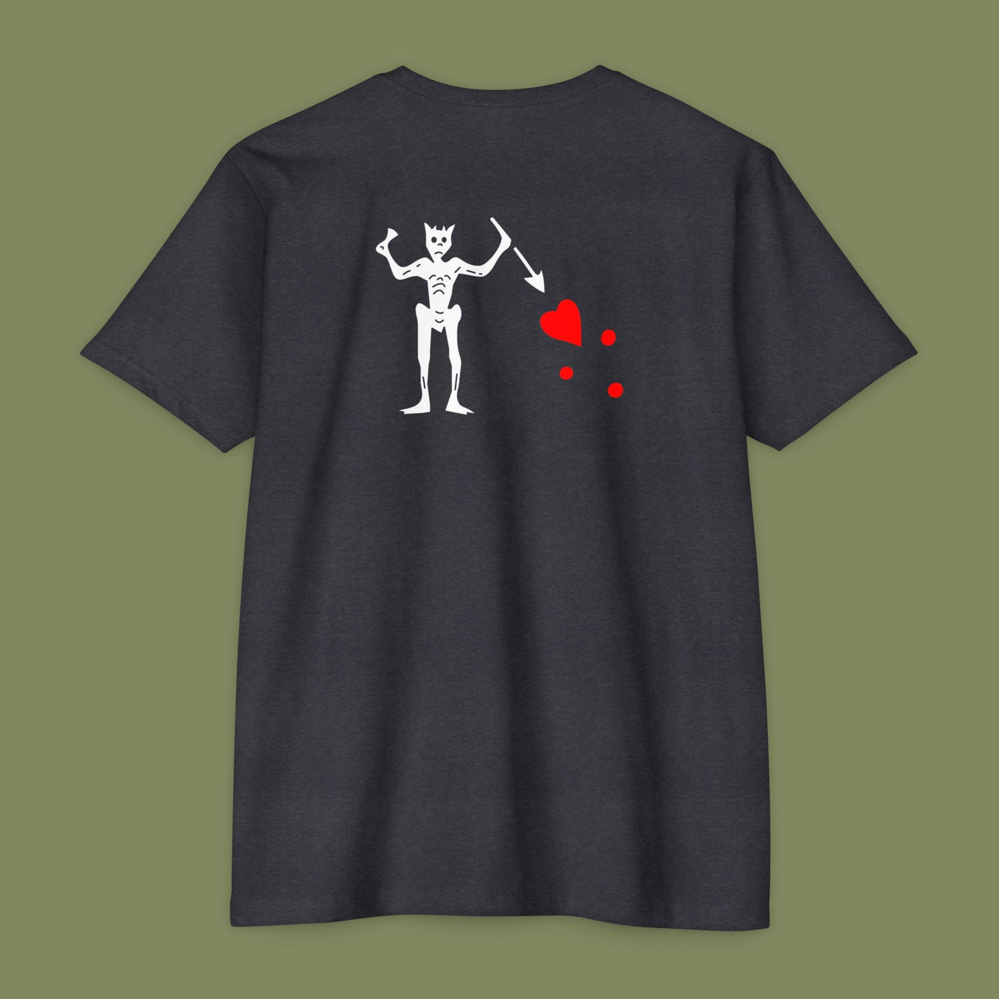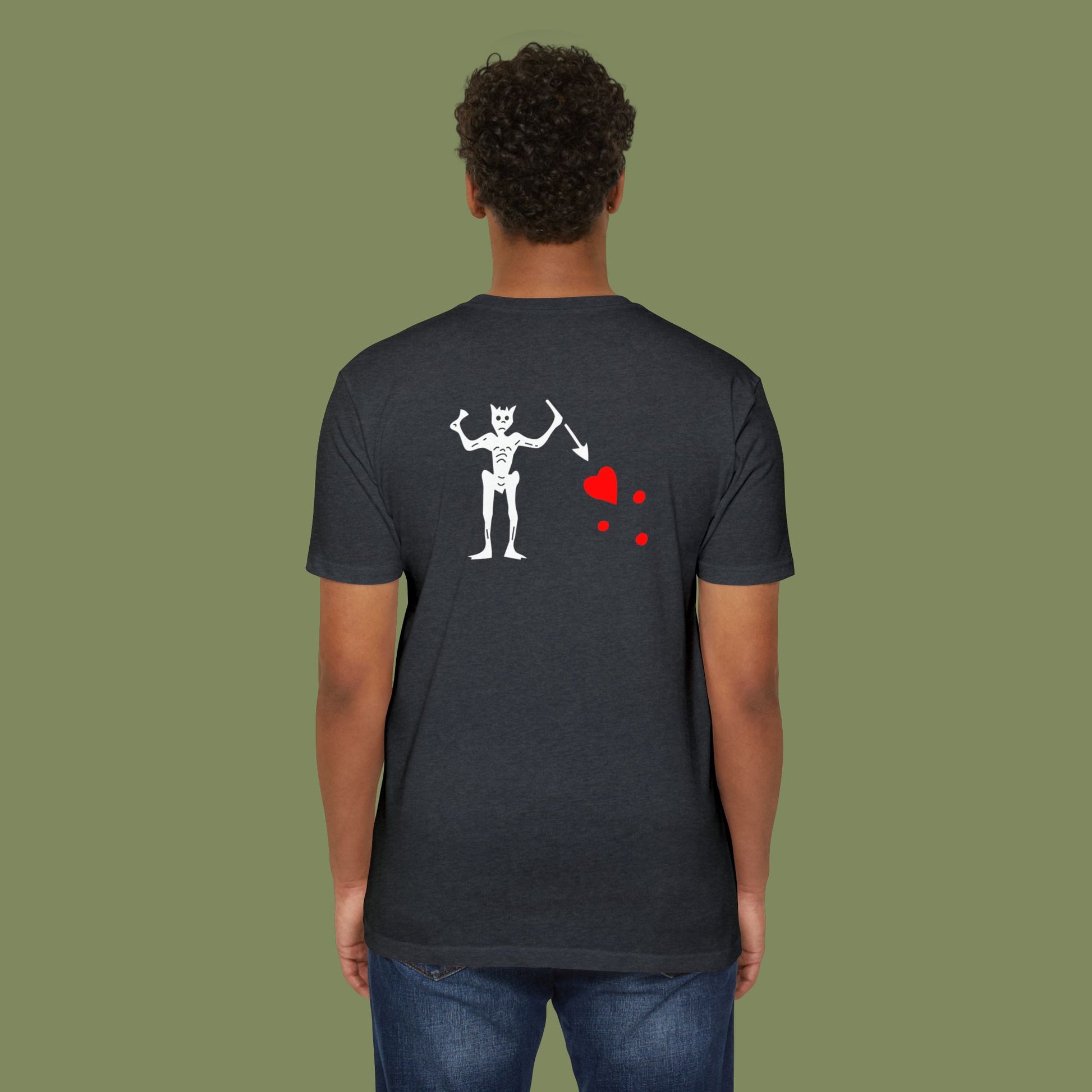 The front features a striking depiction of Blackbeard's skull, paying homage to his legendary pirate legacy. On the back, his iconic flag flies proudly, a symbol of unwavering determination. With this tee, you carry a piece of history wherever you go.