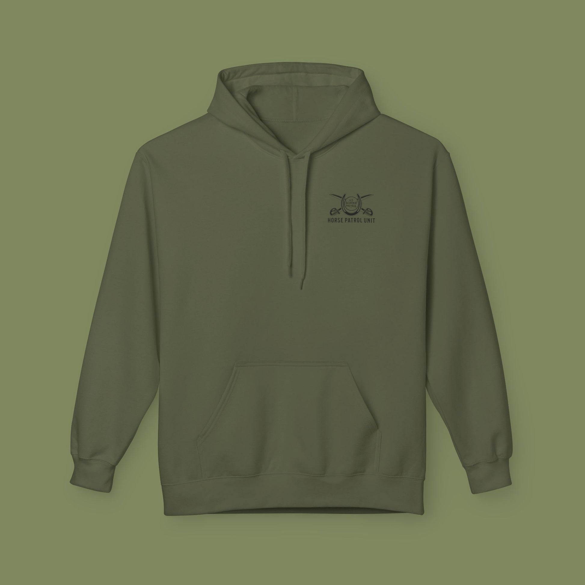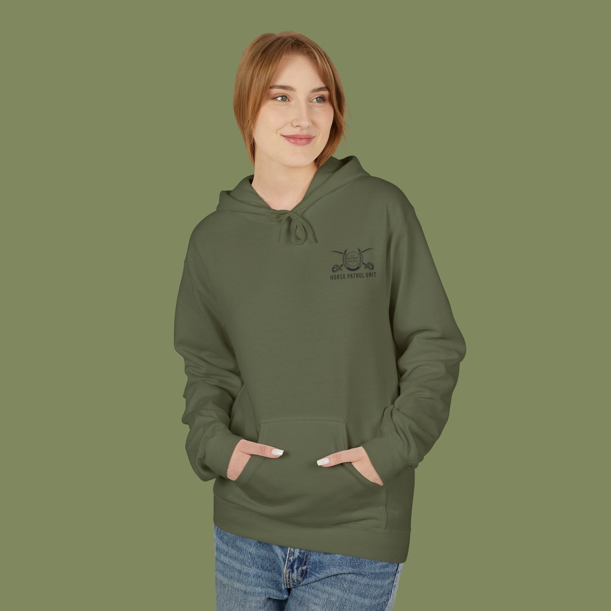 Stay warm and stylish with this Unisex Midweight Softstyle Fleece Hoodie featuring a classic BP Horse Patrol design. Perfect for those who appreciate law enforcement or patriotic themes, this hoodie is great for casual wear or as a statement piece during holidays or celebrations.