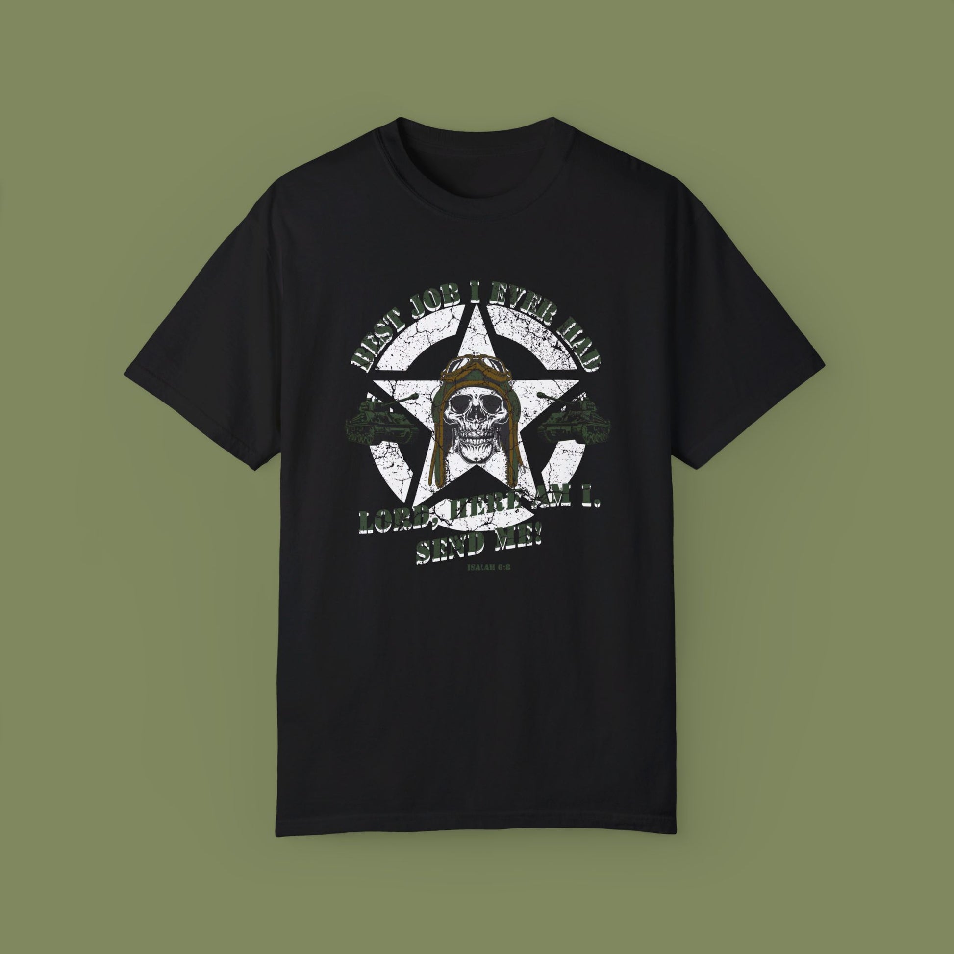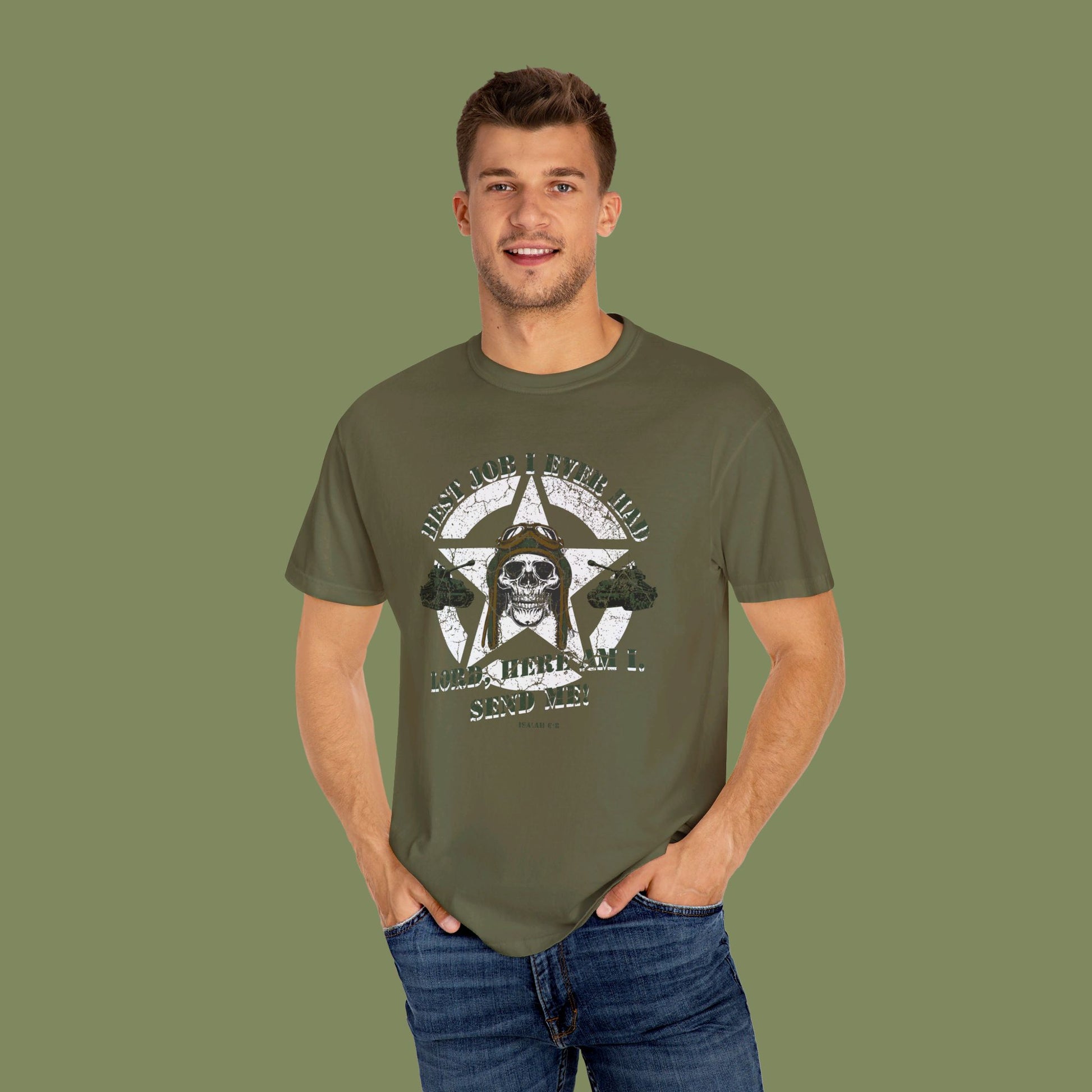 Embrace a piece of history with style and comfort. The "Fury - The Best Job I Ever Had" t-shirt by Vint Hill Designs is not just a garment; it's a statement of honor and valor.