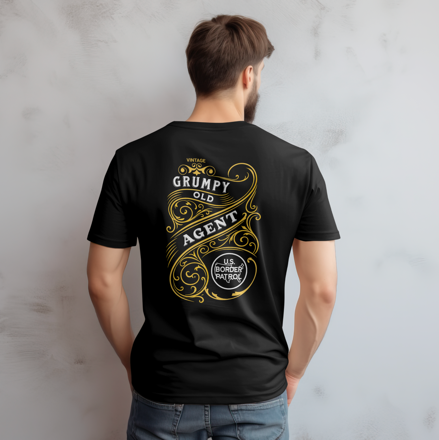 Printed on our softest, premium-quality black t-shirt, the Grumpy Old Agent tee blends vintage style with Border Patrol pride. The back features an ornate, old-world design with bold scrollwork and typography that reads “Vintage Grumpy Old Agent,” anchored by the iconic U.S. Border Patrol emblem. It’s a classic look that nods to years of service, grit, and experience—no explanations needed.