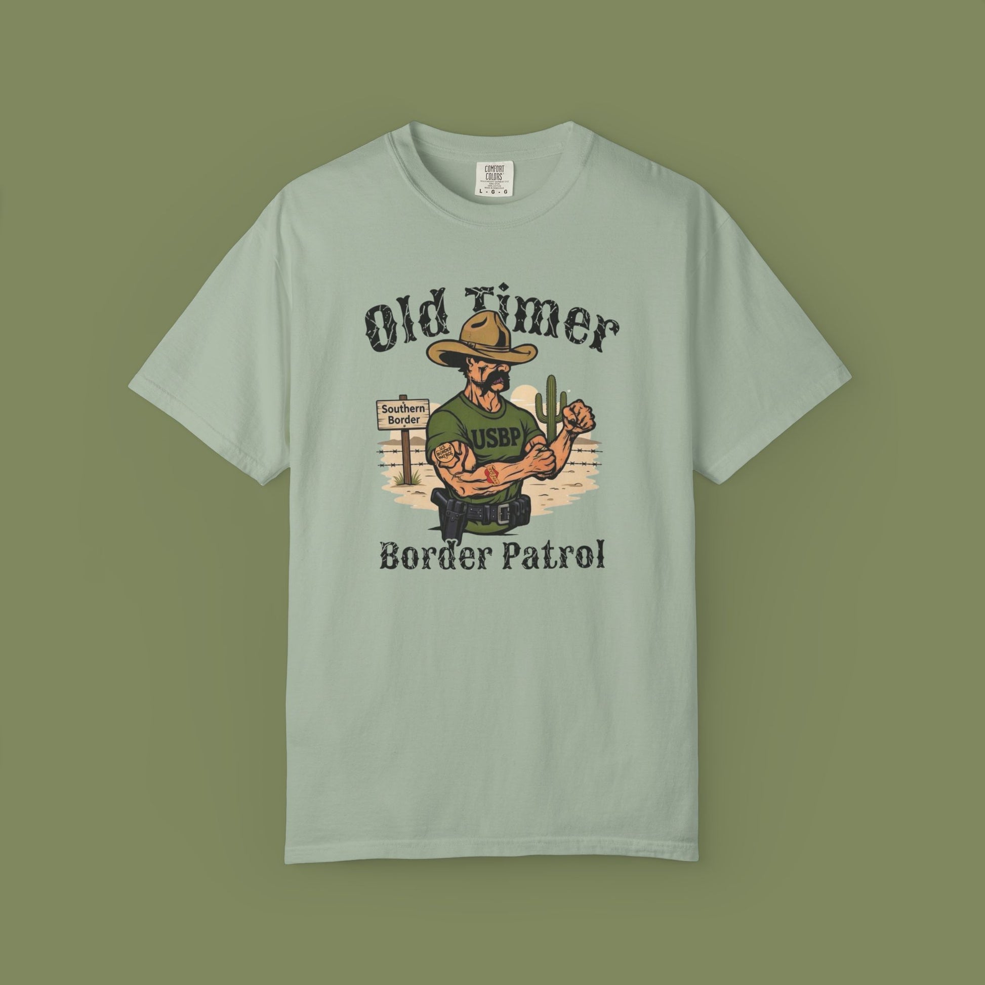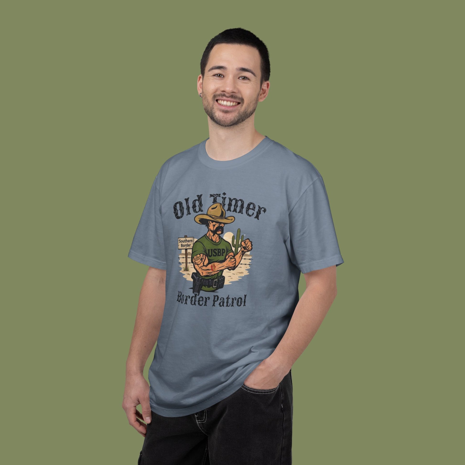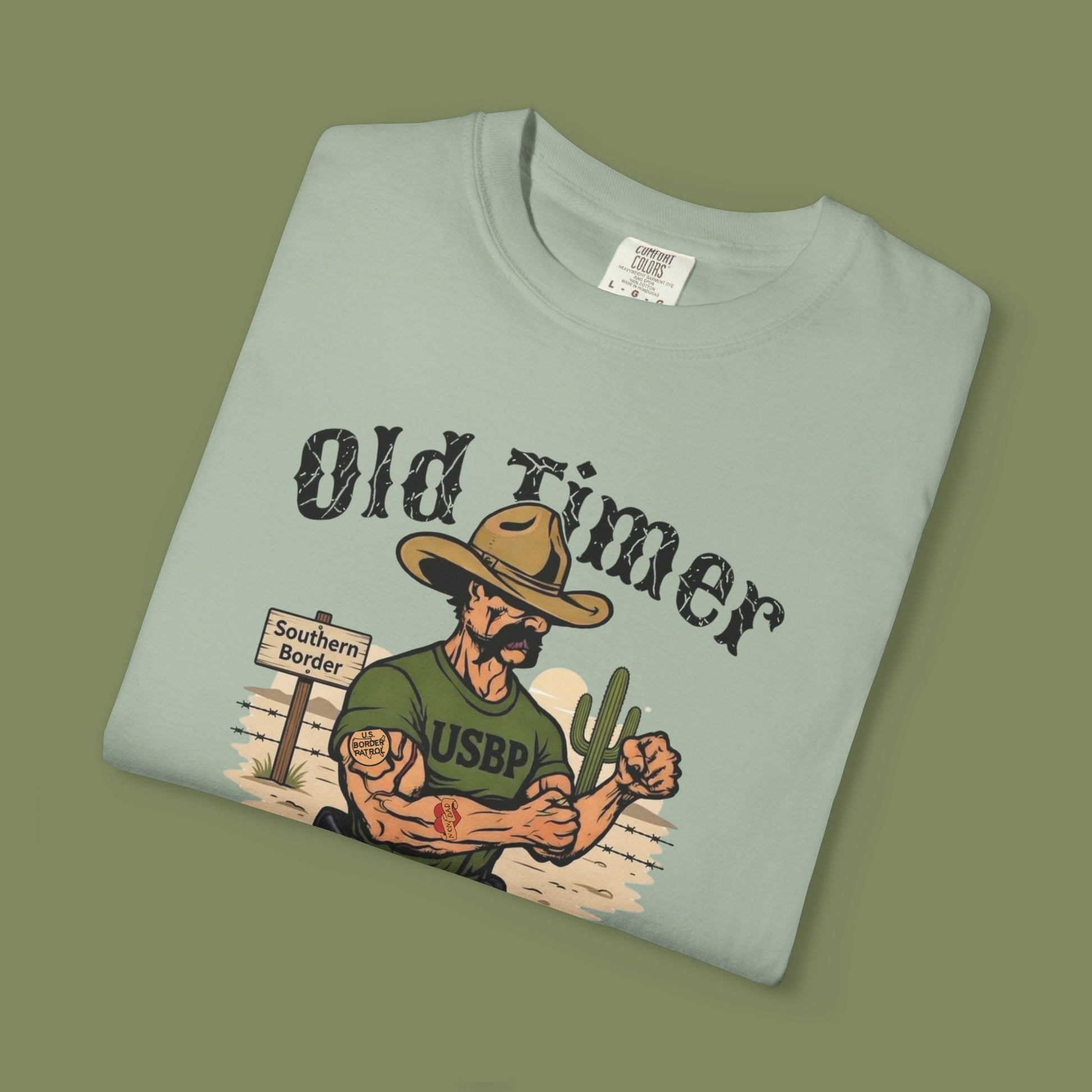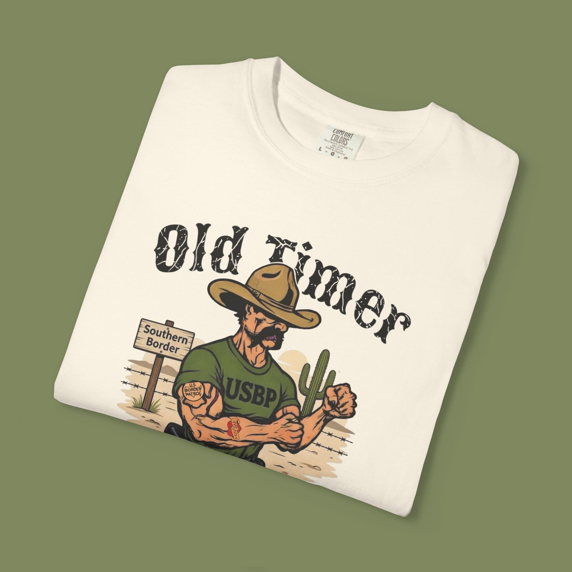 Built for those who remember the long shifts, dusty roads, and the quiet pride of the Southern Border. The Old Timer Border Patrol Tee by Vint Hill Designs brings vintage western patrol grit to life with warm, muted inks that age beautifully against soft, garment-dyed cotton. The front artwork captures that classic, hard-earned look—sun-faded desert tones, old-school attitude, and a nod to the men who’ve put in the miles.