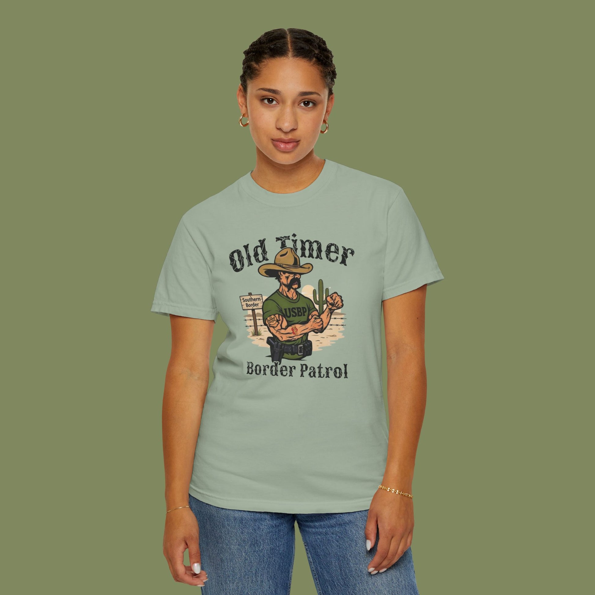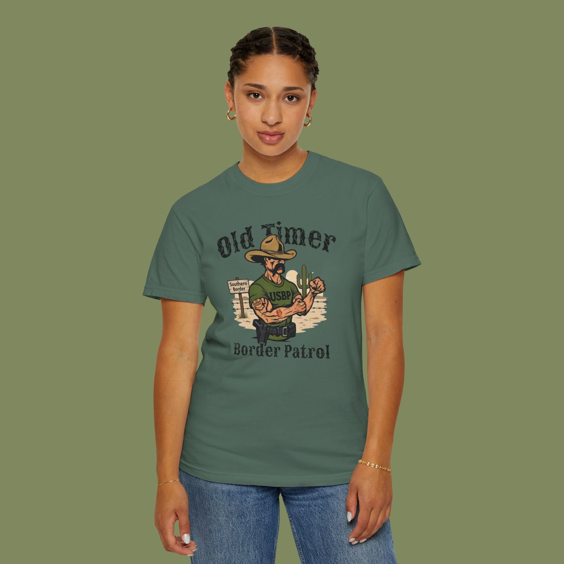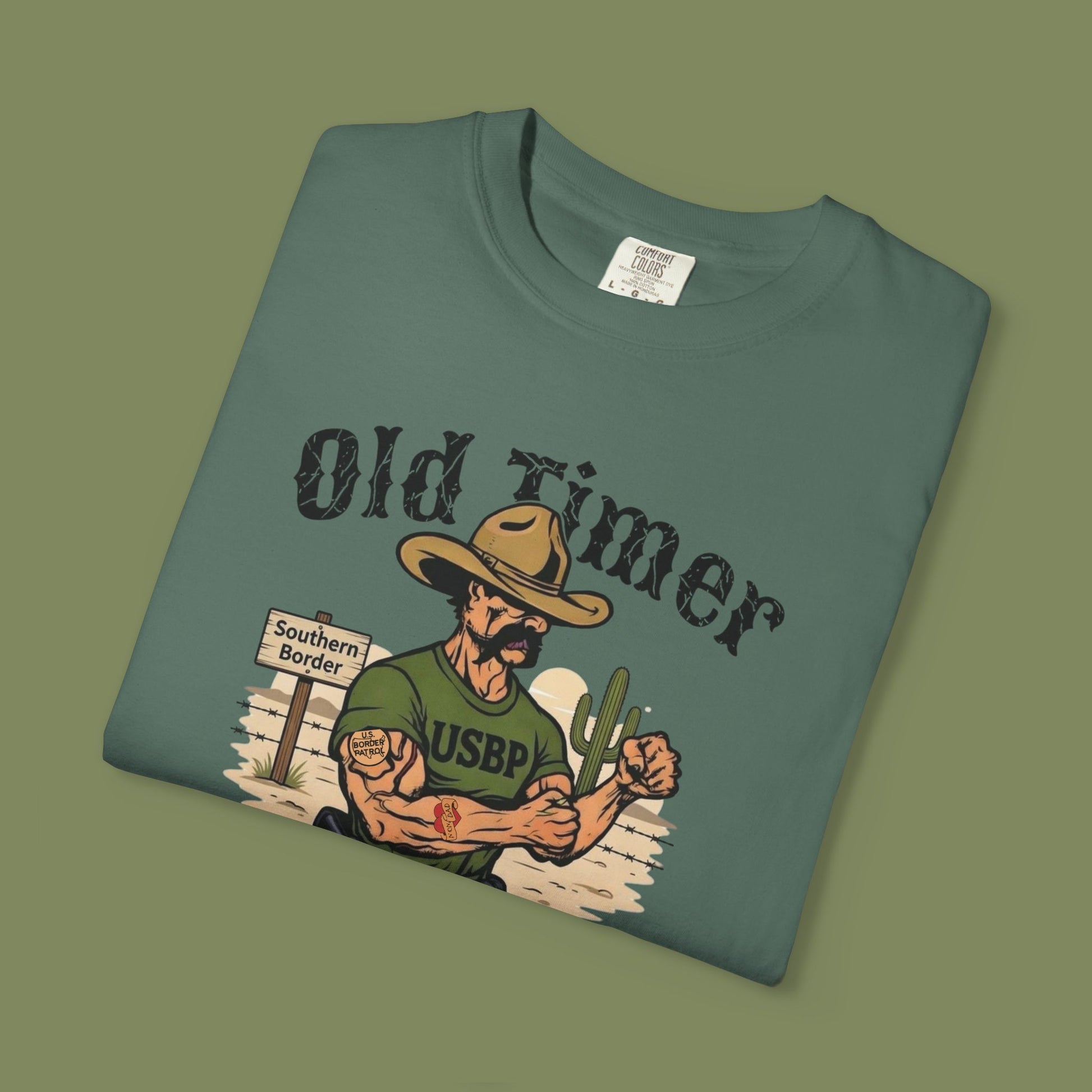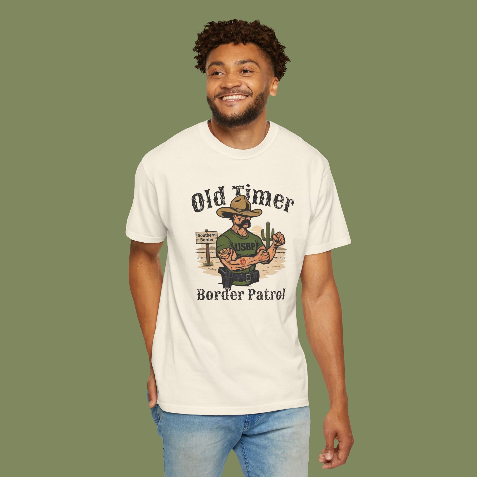 Built for those who remember the long shifts, dusty roads, and the quiet pride of the Southern Border. The Old Timer Border Patrol Tee by Vint Hill Designs brings vintage western patrol grit to life with warm, muted inks that age beautifully against soft, garment-dyed cotton. The front artwork captures that classic, hard-earned look—sun-faded desert tones, old-school attitude, and a nod to the men who’ve put in the miles.