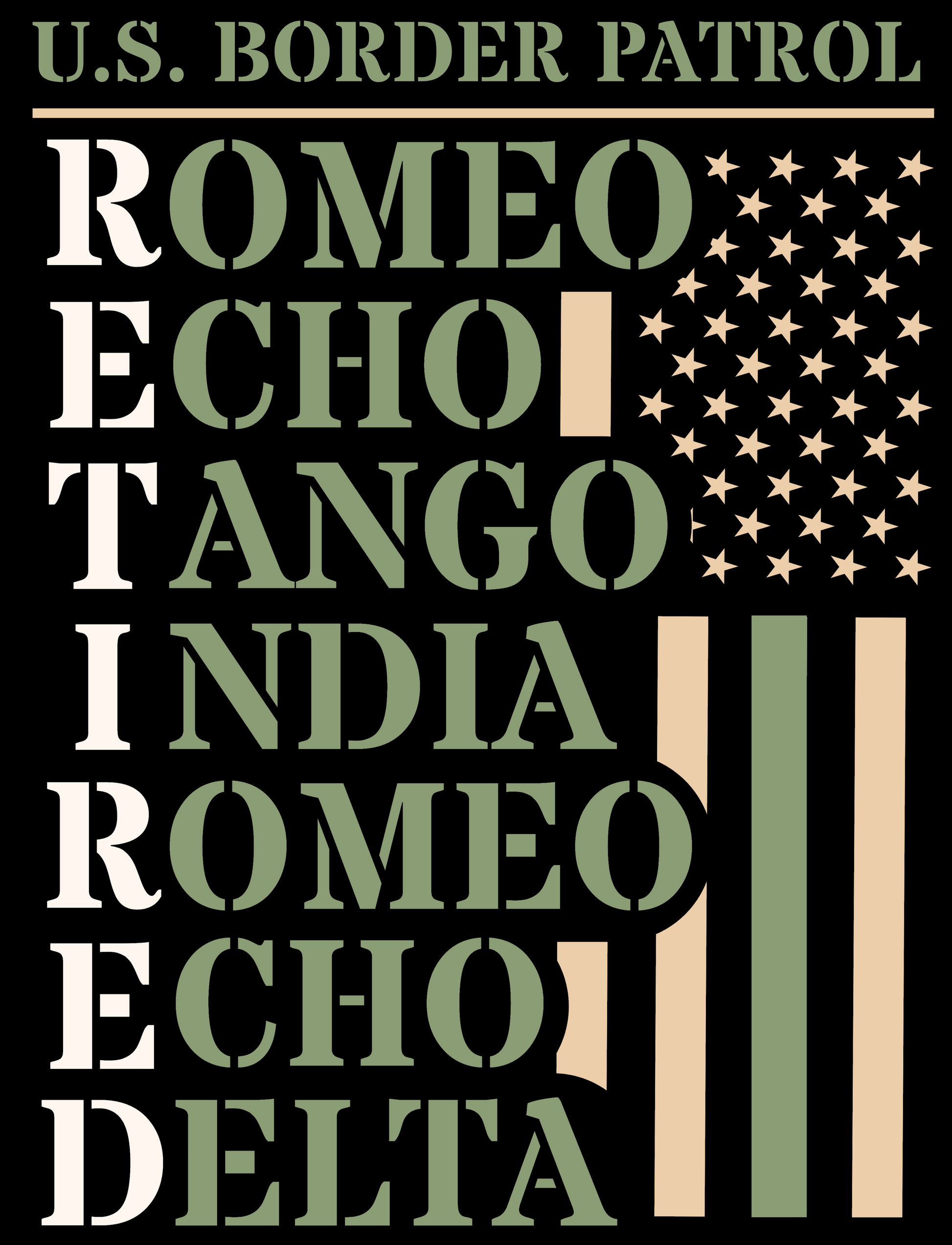 The USBP Retired Phonetic Alphabet Tee is a clean, bold tribute to those who answered the call and carried the badge with pride. Designed in classic military stencil typography with a subtle flag treatment, this piece honors the legacy without saying a word too loud.