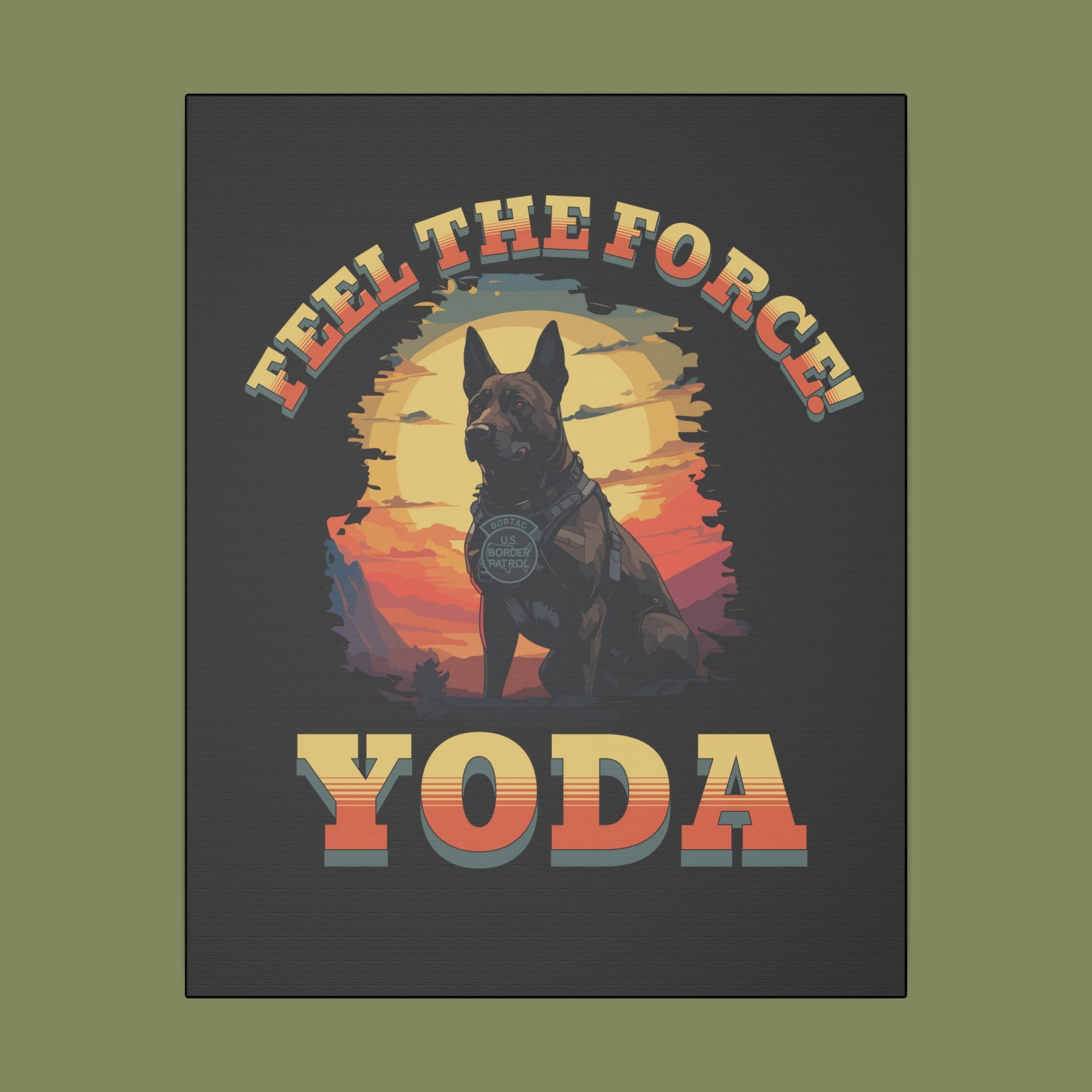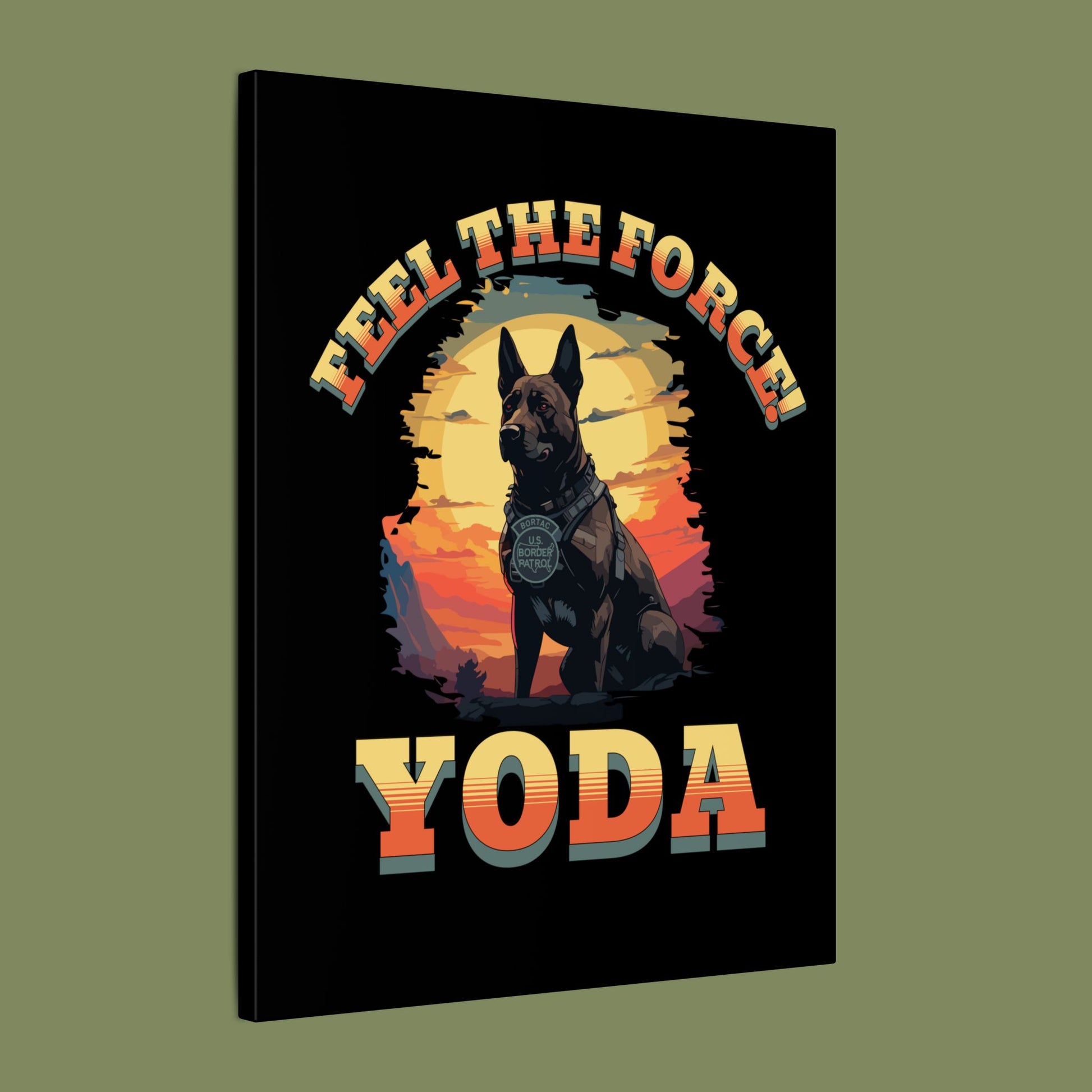 Immerse yourself in the detailed, vibrant colors of Yoda, the canine hero of the BORTAC K9 unit, in action against a backdrop of Pennsylvania woods. This canvas art celebrates bravery, dedication, and heroism, making it a perfect piece for fans and those inspired by true tales of courage. Ideal for Star Wars enthusiasts, dog lovers, and those who appreciate the valor of working animals. Relevant for holidays like National Dog Day and Law Enforcement Appreciation Day.